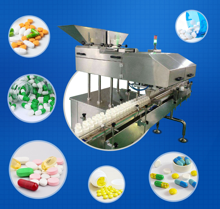 兼容性好:可以對片劑(包括異型片)、膠囊、軟膠囊(透明、不透明)、丸劑等固體制劑或固體顆粒進(jìn)行計數裝瓶。